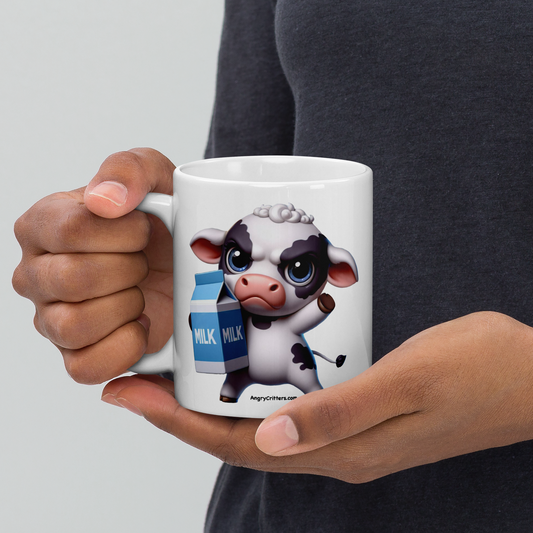 Angry Cow with Milk White glossy mug