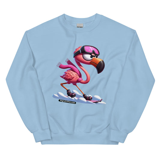 Angry Critters Skiing Flamingo, Unisex Sweatshirt