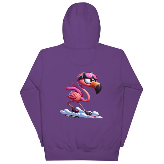 Angry Critters Skiing Flamingo, Unisex Hoodie