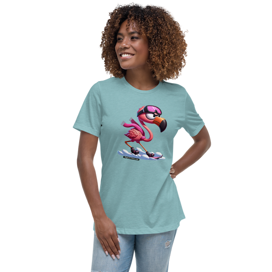 Angry Critters Skiing Flamingo, Women's Relaxed T-Shirt