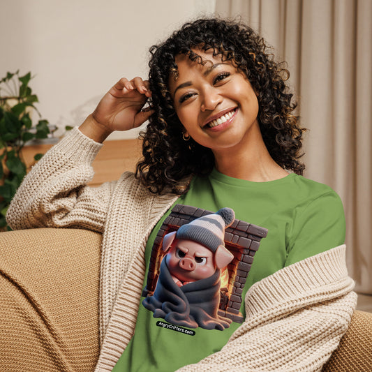 Angry Critters Pig in a Blanket, Women's Relaxed T-Shirt