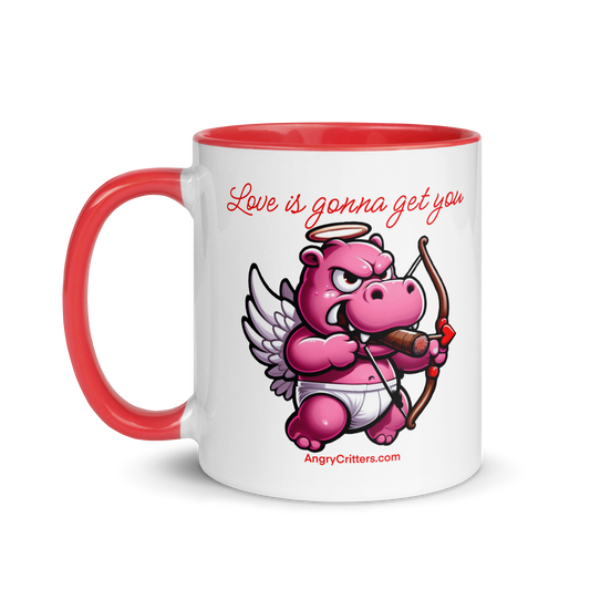 White glossy mug, Love is Gonna Get You Hippo