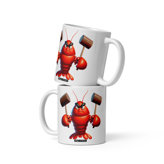 Angry Lobster, White glossy mug