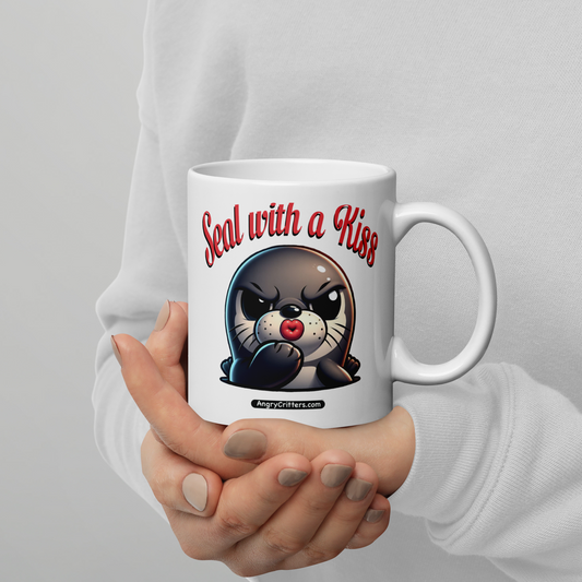 White glossy mug, Seal with a Kiss