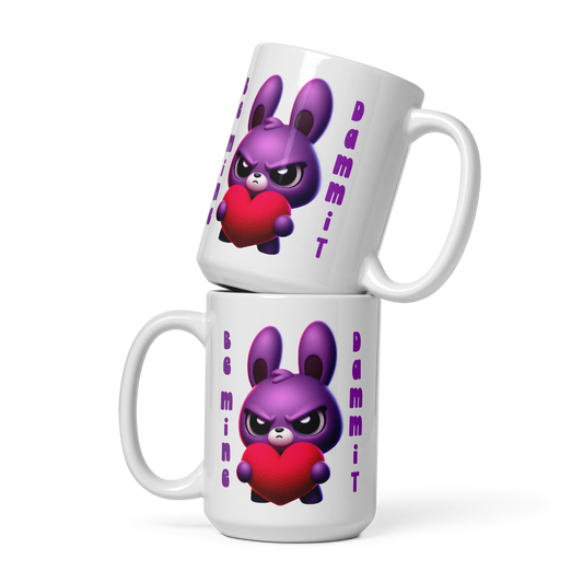 White glossy mug, Be Mine Dammit Bunny