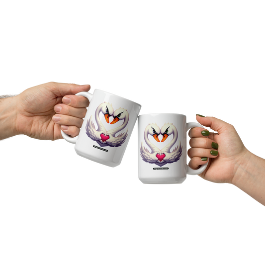 White glossy mug, Swans in Love